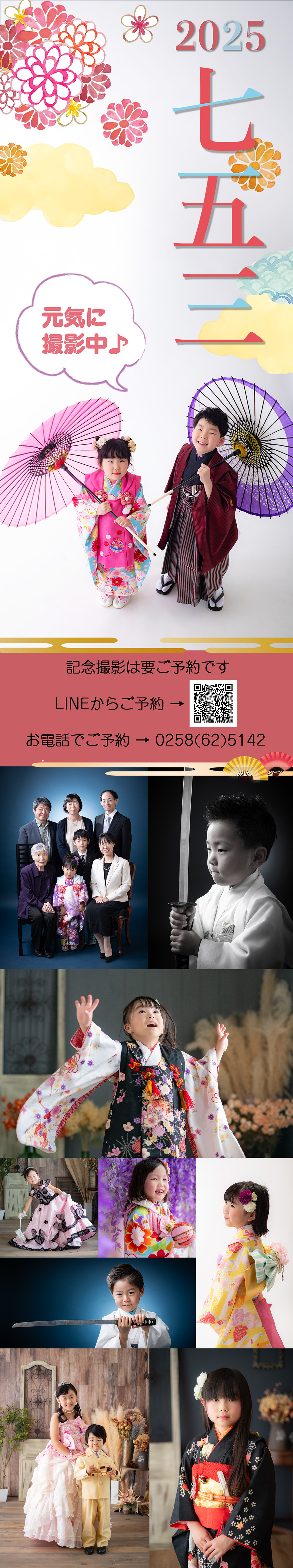 只今、当店のスタジオ記念撮影をしていただいた方に、LINE公式アカウントを友達追加していただくと、スマホにスタジオ記念撮影データ(お買い上げ写真・お1家族様1枚)をプレゼント♪